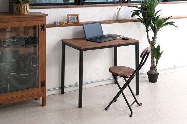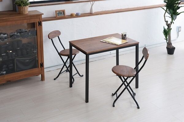 味わい深い質感のヴィンテージ調木目柄と引き締めカラーのブラックスチールを採用したVintageシリーズの折りたたみチェア。
