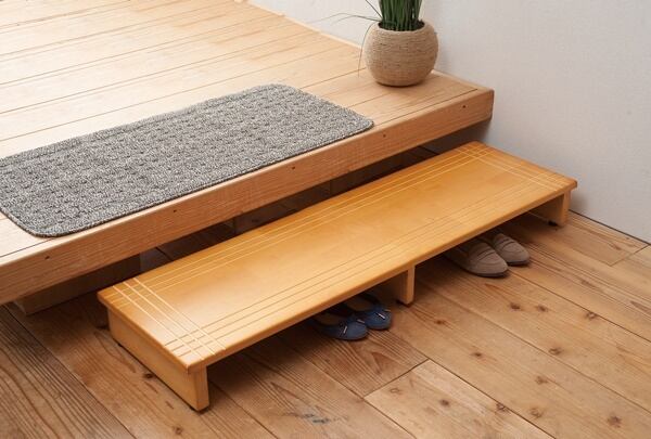 玄関の昇り降りの負担を軽減する木製玄関踏み台。