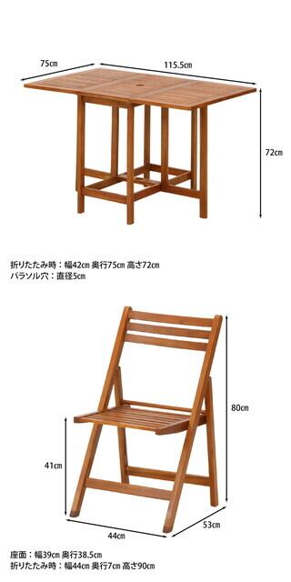 テーブルは天板中央に穴が空いており、パラソルと合わせてご使用いただけます。