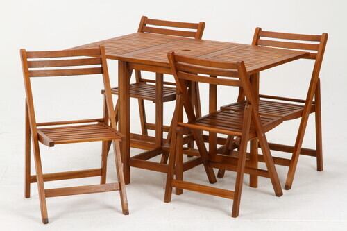 チェアは折りたたんでテーブルの天板下にまとめて収納することができます。